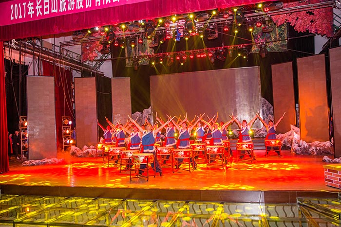 晚會節(jié)目分舞蹈類、歌曲類、語言類共計17個節(jié)目。其中舞蹈《長白祥云》、《關東漢子》、《天池水色》、《茉莉花》給人極大的視覺震撼,綢吊表演更是博得滿堂喝彩;歌曲《長白山眷戀》、《情人湖》、《我愛大中國》、《搖籃曲》以及由股份寶寶合唱的《游子吟》,更是溫暖了整個冬天;由職工自編自演的小品《快樂的駕駛員》,生動再現了一線工作中喜樂感人的故事,小品《白蛇傳》更是笑中帶淚,將愛的主旋律與長白山“長相守,到白頭”的寓意完美契合;鋼琴詩朗誦《因為有你·輝煌與共》,用慷慨激昂的誦讀,把本次活動的主題再次點燃,引起全場共鳴;晚會還以視頻的方式還原了員工在一線的工作場景,表露了股份小家的真情告白;晚會在公司全體領導和全體黨員共同演唱的《光榮與夢想》鏗鏘有力、慷慨激昂的歌聲中,落下帷幕!