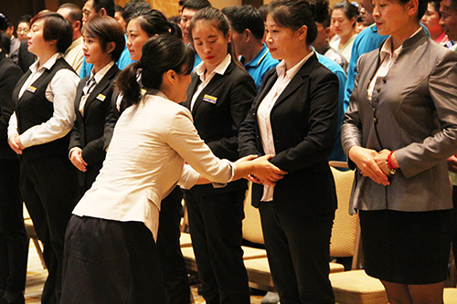 7月3日—7月7日,為加強(qiáng)火山溫泉部落員工從業(yè)素質(zhì),樹(shù)立良好企業(yè)形象。公司特邀請(qǐng)由現(xiàn)任上海懋德商務(wù)咨詢有限公司董事長(zhǎng)阿部廣美女士、人才教育部南慧麗女士、營(yíng)業(yè)部主任延仙子女士等組成的日本資深培訓(xùn)團(tuán)隊(duì),向火山溫泉部落員工進(jìn)行服務(wù)接待知識(shí)講座。本次培訓(xùn)為期五天,在皇冠假日酒店宴會(huì)廳舉行。