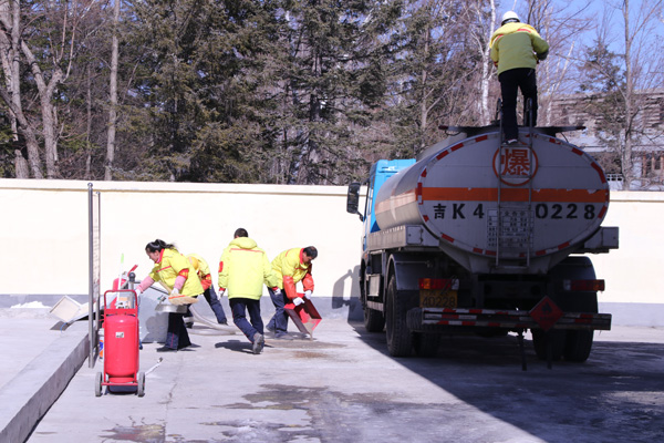 2018年3月20日,長白山春季防火期開始之際,長白山北景區(qū)加油站組織員工開展消防應(yīng)急演練。