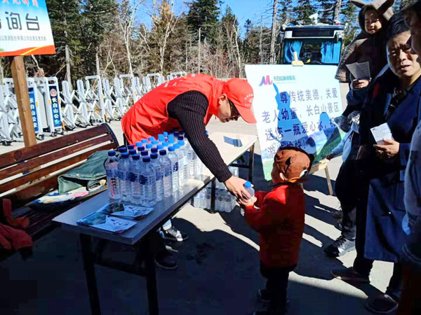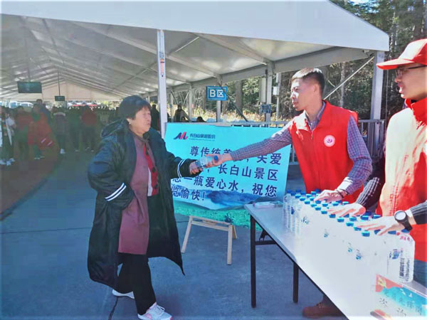 為進(jìn)一步豐富黨組織活動(dòng),增強(qiáng)黨員的服務(wù)奉獻(xiàn)意識(shí),大力弘揚(yáng)長(zhǎng)白山景區(qū)關(guān)愛游客的良好風(fēng)尚,推動(dòng)旅游服務(wù)質(zhì)量提升工作向縱深發(fā)展。國(guó)慶期間,長(zhǎng)白山北景區(qū)黨支部組織多名黨員、干部開展了“義務(wù)咨詢、免費(fèi)送水”的志愿服務(wù)活動(dòng)。