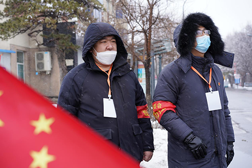 一場春雪,給這個被疫情所困擾的大地帶來了活力,一個個飽含“必贏”信心的字眼在雪中抒寫,冒雪堅守抗“疫”一線的他們,依然是鏡頭下的主角。美人松下,小區(qū)隘口,身戴紅色袖標(biāo)的志愿者們,在雪的映襯下格外挺拔。